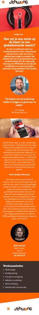 De desktop uitstraling van schwungreclame.nl is vertaald naar een mobiel vriendelijk ontwerp dat overzichtelijk en gebruikersvriendelijk is maar vooral ook erg snel geladen wordt. Niets vervelender dan een langzaam ladende mobiele website